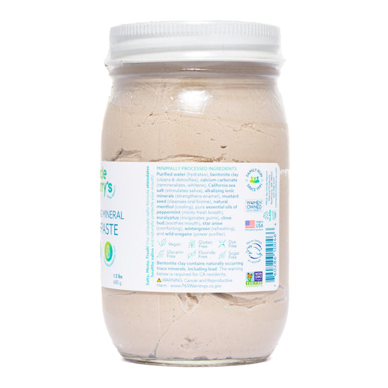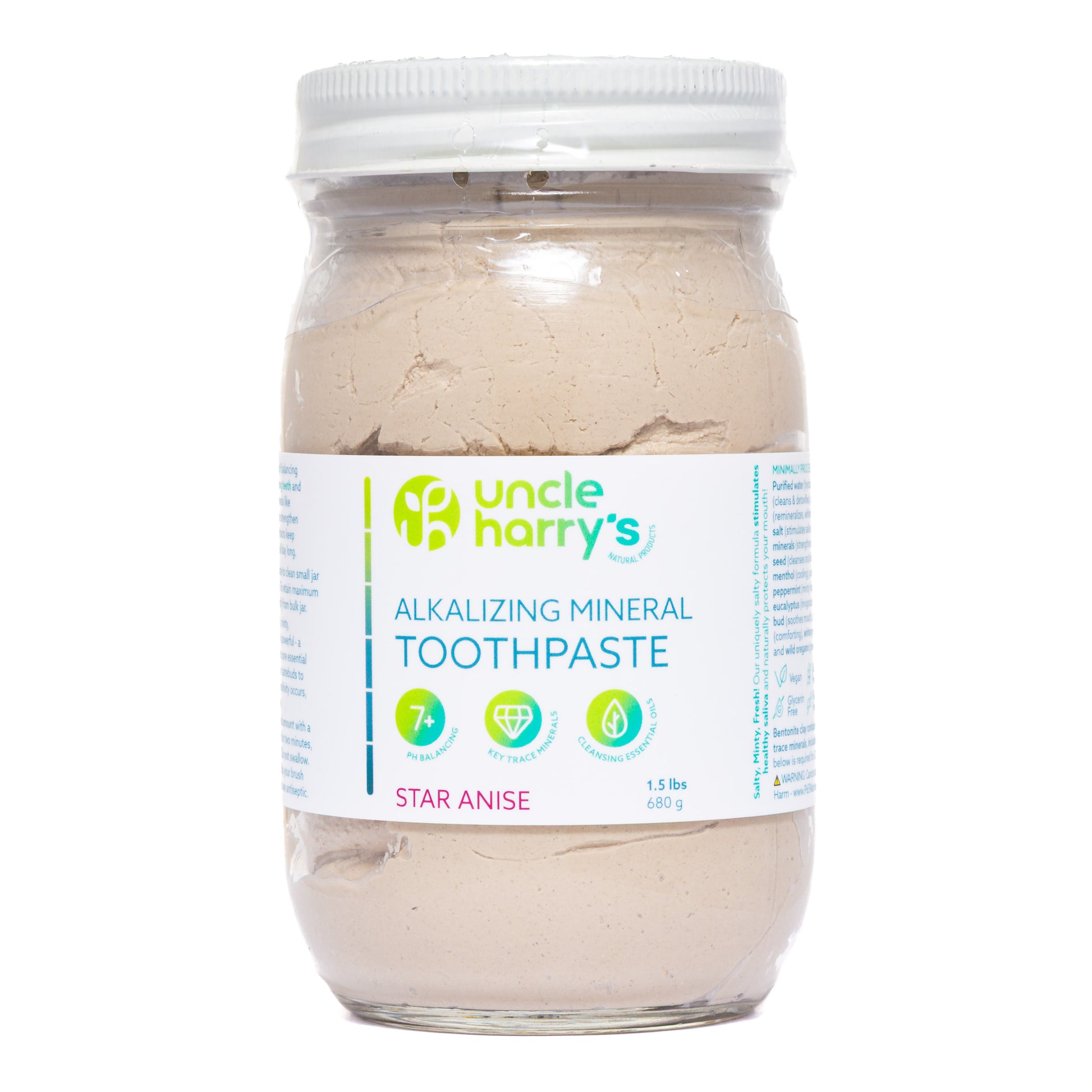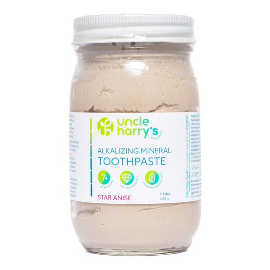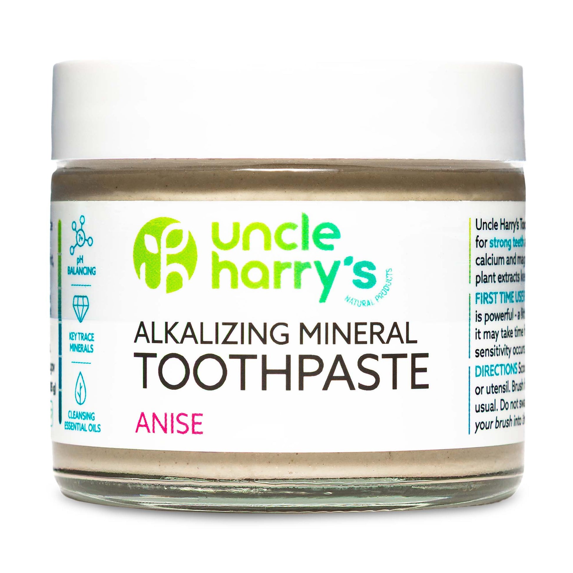 Uncle Harry’s Toothpaste encourages remineralization of tooth enamel by neutralizing acids and bacteria, supplying calcium and magnesium to strengthen teeth, and promoting an alkaline pH.