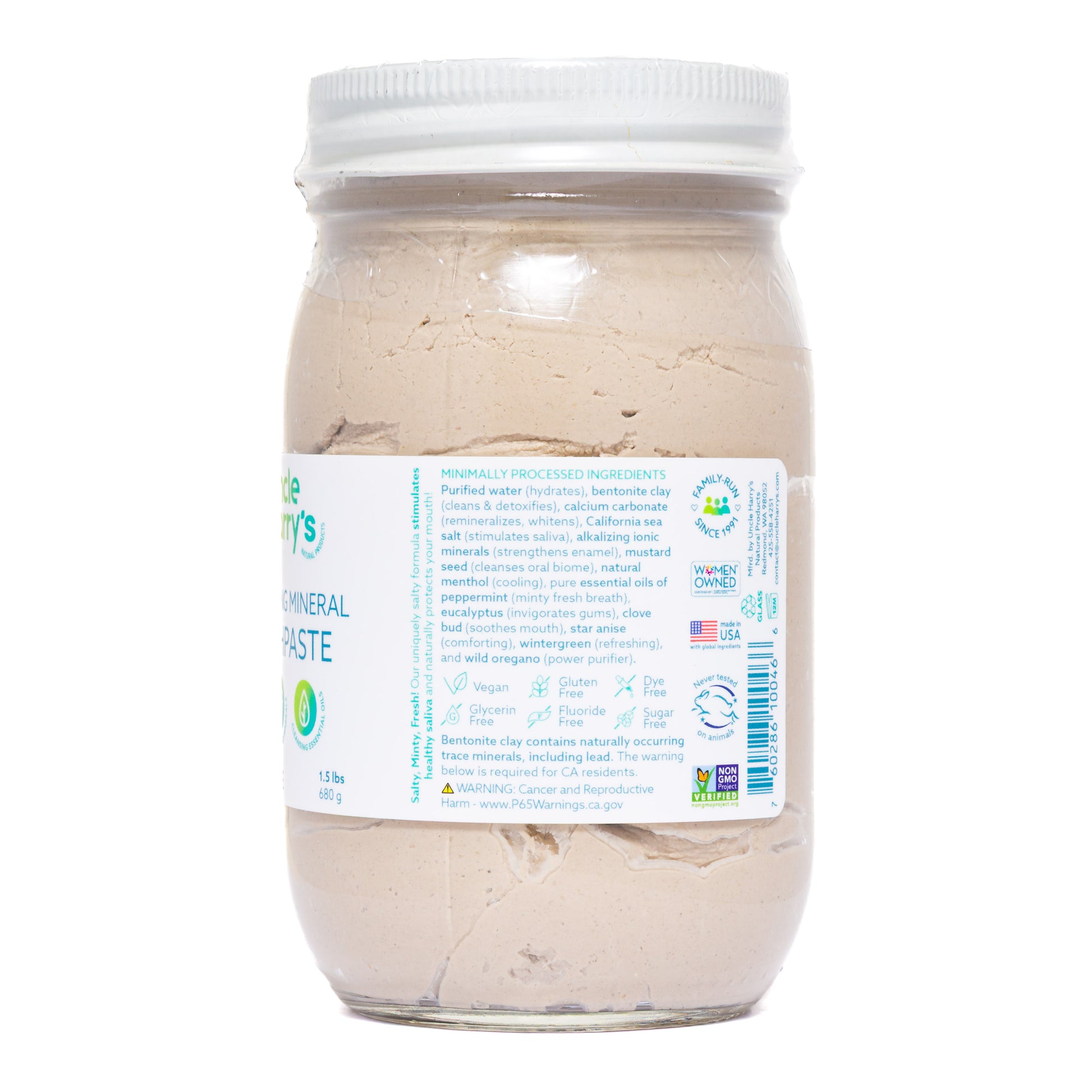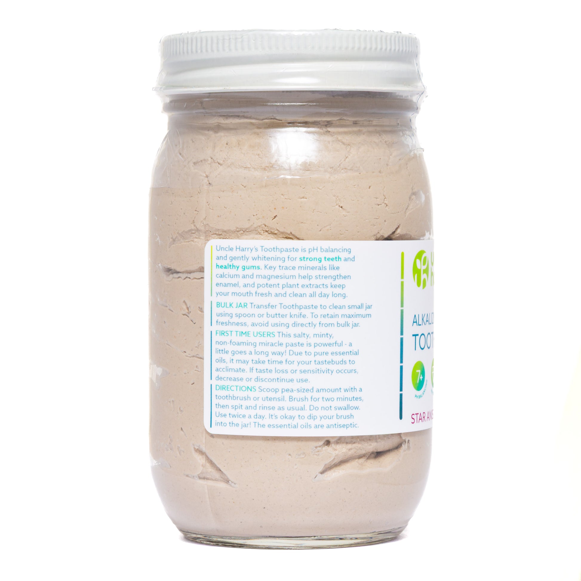 1.5 lb glass jar - Use this bulk jar to refill your 3 oz Uncle Harry's Toothpaste jars when they run low! Limit 4 per order.