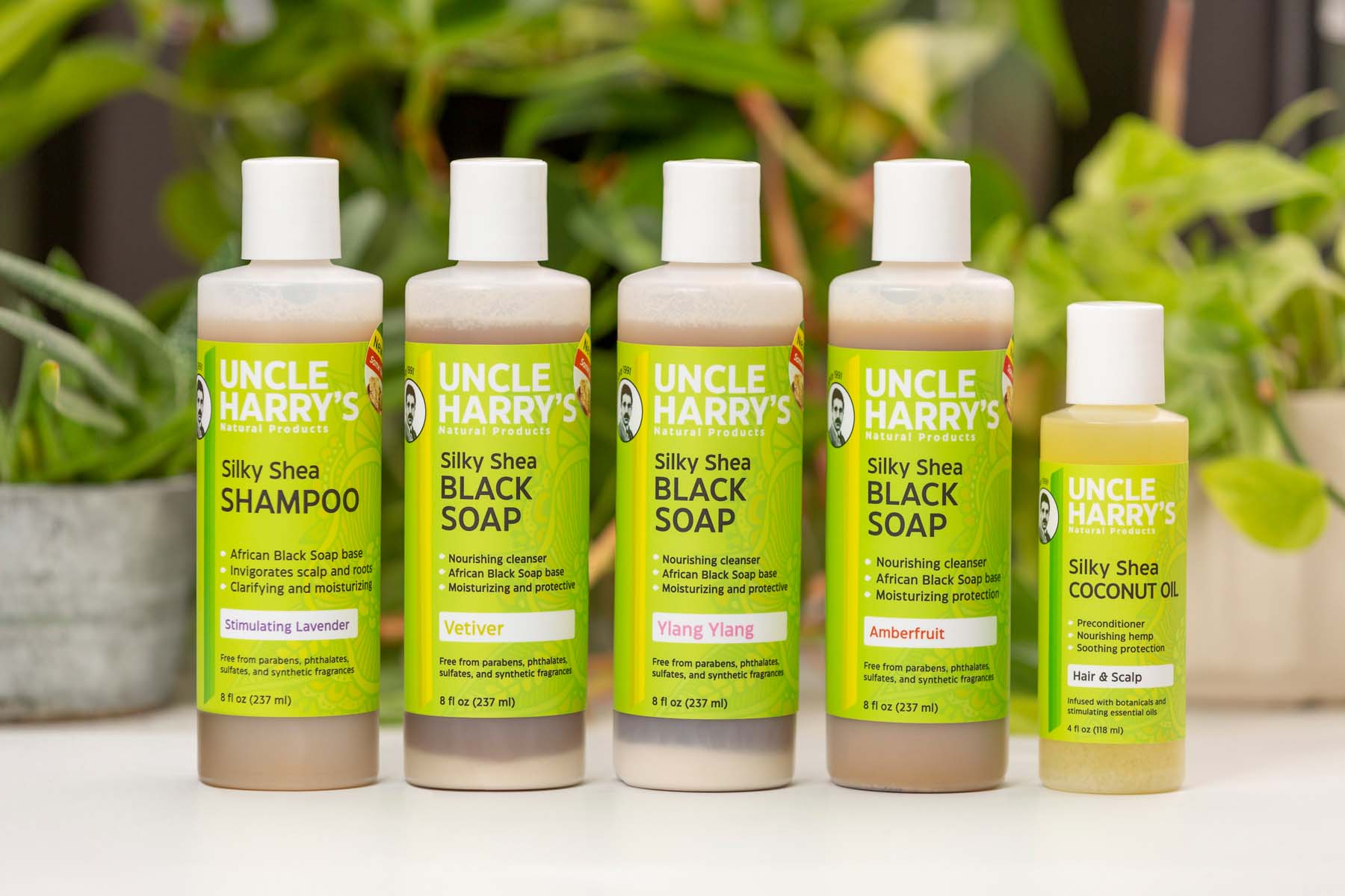 Uncle Harry’s Silky Shea Shampoo combines clean ingredients in a base of pure soap, with no chemical fillers or preservatives. African Black Soap is still handcrafted in Ghana using time-honored traditional methods. It has incredible properties to deeply cleanse, soften, and protect hair without stripping its natural oils. Apple cider vinegar and intentionally blended plant essences help to clarify problematic scalp issues and stimulate roots, while organic hemp oil and unrefined raw shea butter provide exceptional nourishment and moisture for all hair types.