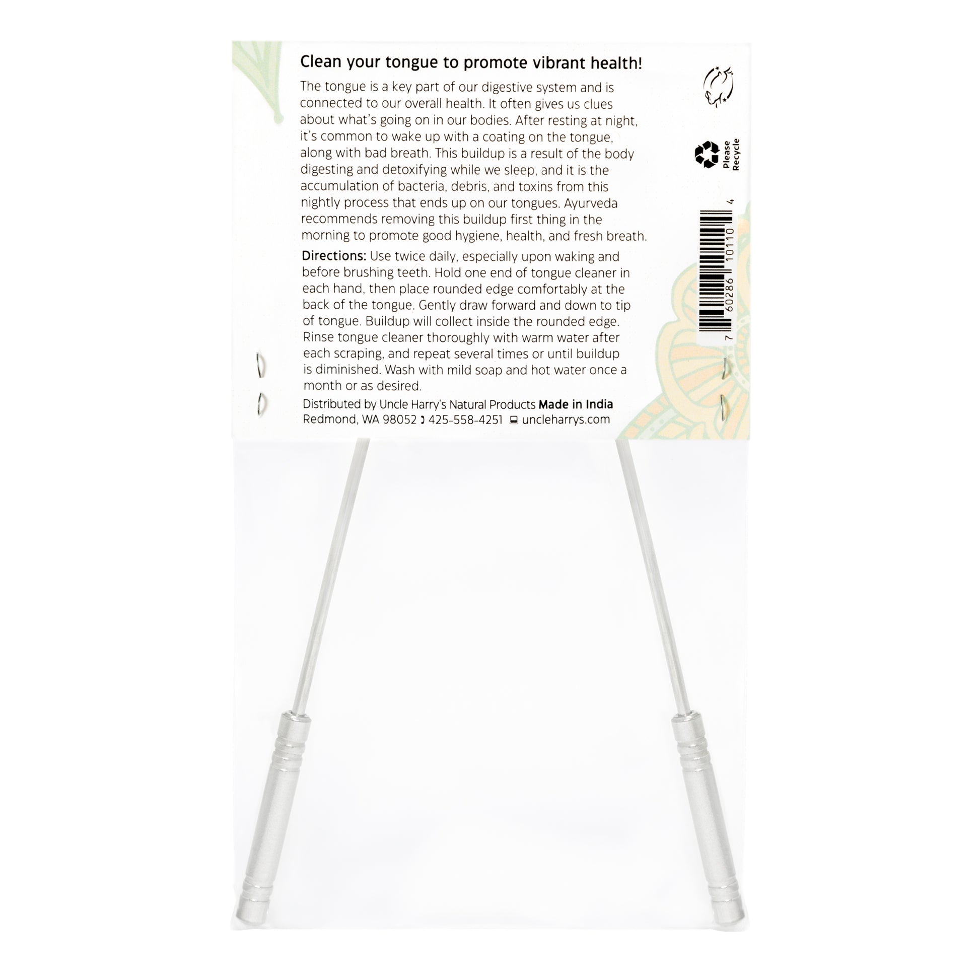 Durable stainless steel tongue cleaner. Made in India.