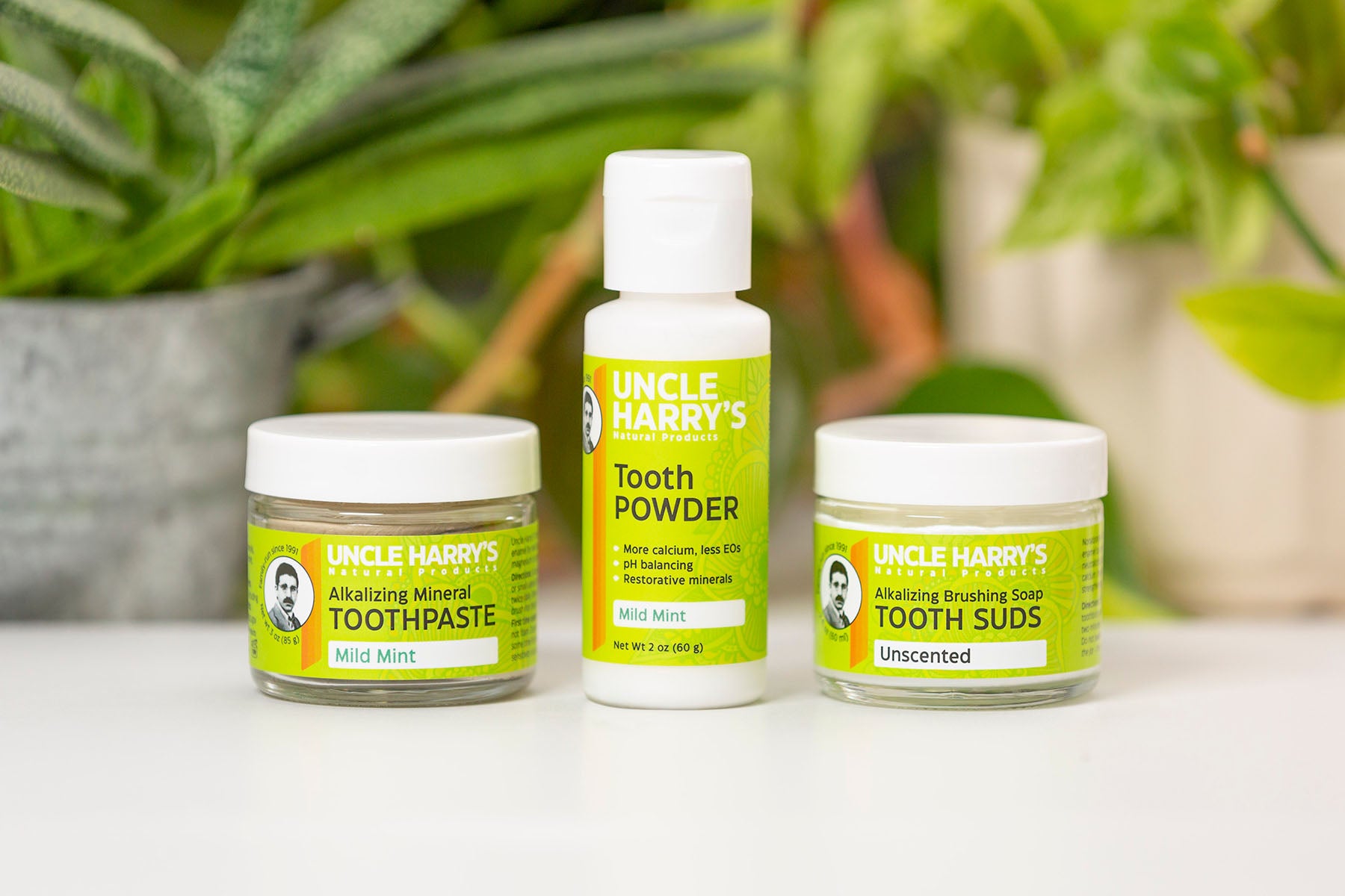 Uncle Harry's Tooth Suds help remineralize tooth enamel by promoting an alkaline pH of the mouth, neutralizing acids and bacteria, and supplying calcium, magnesium & phosphorus for gentle strengthening of teeth. This brushing product is nonabrasive with great foaming action.