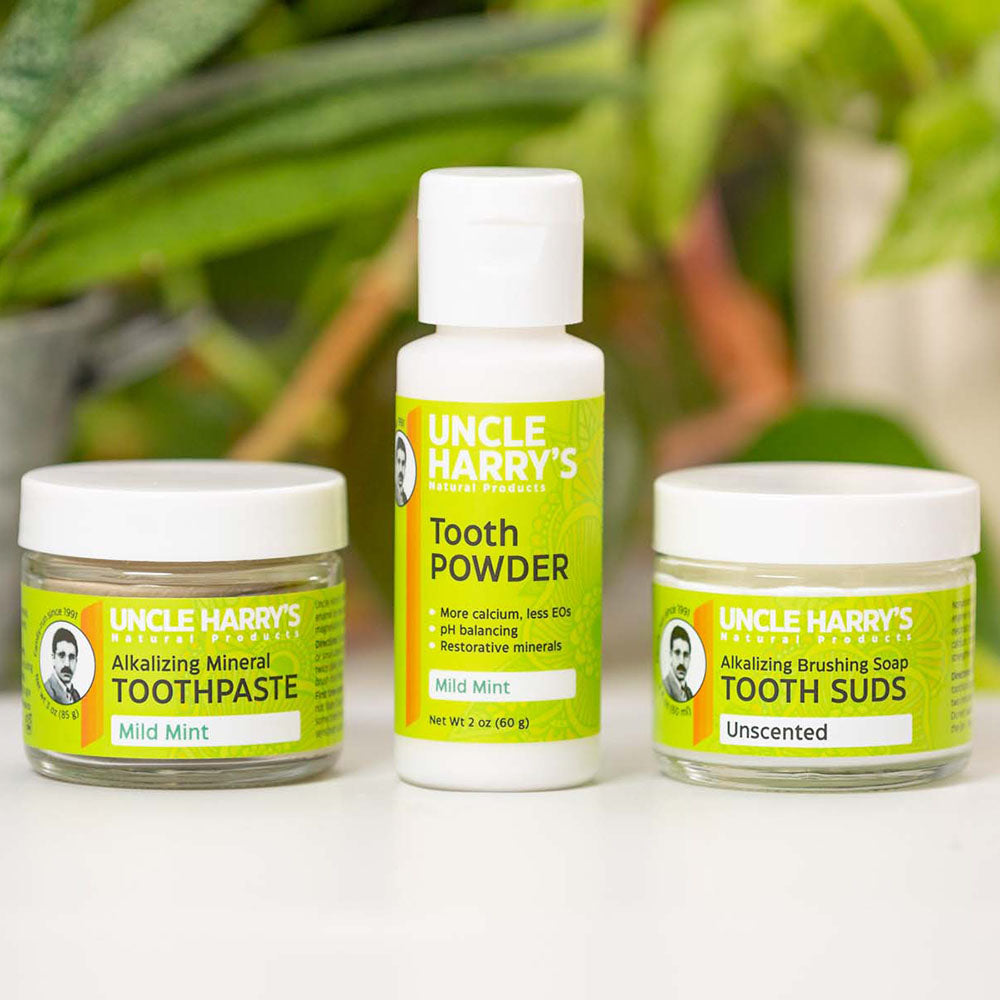 Naturally purifying salt and calcium work together to alkalize the mouth and remineralize enamel, while providing a gentle polish and refreshing herbal taste. Our Mild Mint Tooth Powder offers the same benefits as All Natural Tooth Powder but with a subtler, mild mint flavor.